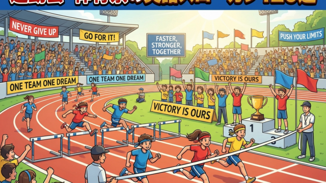 英語名言&格言BEST20特集 【運動会・体育祭の英語スローガン120選】かっこいい・団結・四字熟語・おもしろ系まで全部決まる! 2026-02-06 haradaeigo 原田英語.com 「今年のスローガン、英語でかっこよく決めたい!」 運動会や体育祭の準備で、最初にして最大の悩みがスローガン選び …