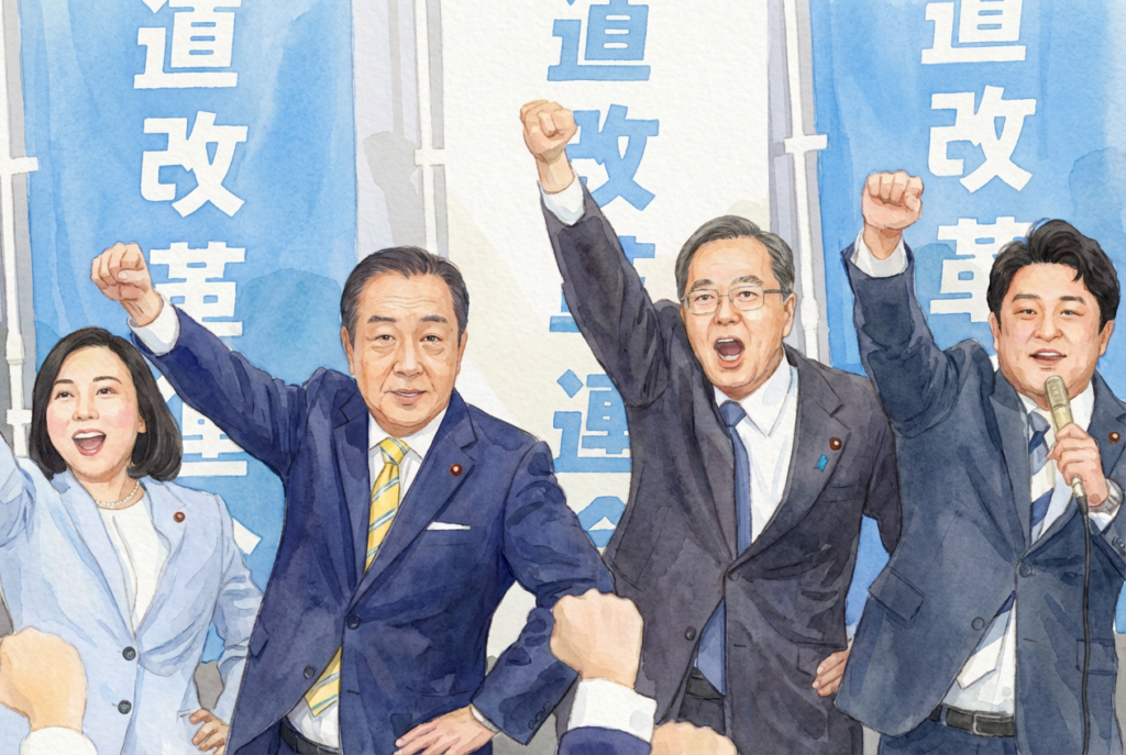 【出典】2026年1月22日 The Asahi Shimbun Centrist Reform Alliance pushes ‘people first’ election platform | The Asahi Shimbun