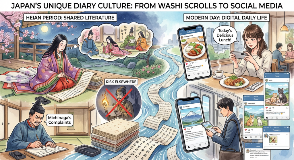 Today, this tradition continues. Japanese people still write diaries, now with photos on social media or apps. They share travel stories, food, or daily fun. Experts say Japan’s diary culture comes from using special paper like washi, which lasts a long time, and a habit of writing in kana script, which made it easy for women to express themselves.