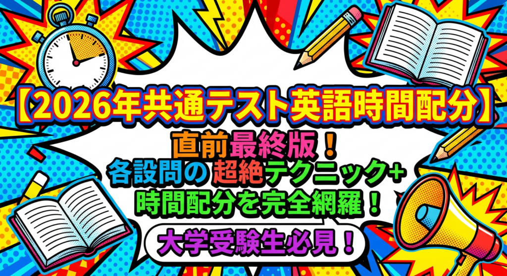 【2026年共通テスト英語時間配分】”直前”最新版!各設問の超絶テクニック+時間配分を完全網羅!大学受験生必見!
