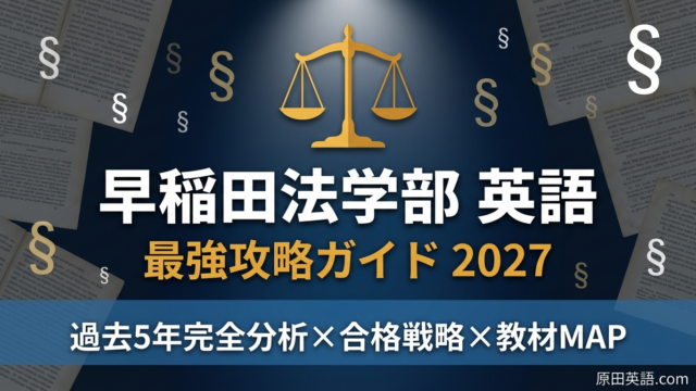 早稲田大学 【2027年度決定版】早稲田大学法学部 英語 最強攻略ガイド|過去5年徹底分析&合格戦略!~時間配分・教材MAP・出題予想まで完全網羅~ 12/04/2026 haradaeigo 原田英語.com ⚖️ WASEDA LAW ── ENGLISH 2027 早稲田大学法学部 英語 最強攻略ガイド 2027年度入試対応版 …