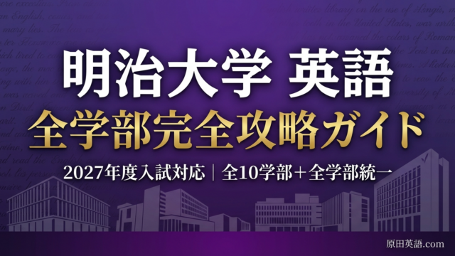 GMARCH英語対策 【2027年度】明治大学 英語 全学部完全攻略ガイド|配点・出題傾向・時間配分・教材を徹底解説 12/04/2026 haradaeigo 原田英語.com 🎓 MEIJI UNIVERSITY ── ENGLISH 2027 明治大学 英語 全学部完全攻略ガイド 2027年度入試対 …