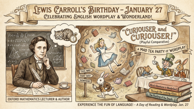 ミスター原田の超絶英語コラム Lewis Carrollの誕生日で不思議の国のアリスから英語の言葉遊びを学べ!【Mr.原田超絶コラム118】 2026-01-27 haradaeigo 原田英語.com Lewis Carrollの誕生日で学ぶ不思議の国のアリスと英語の言葉遊び イギリスの作家ルイス・キャロルは183 …