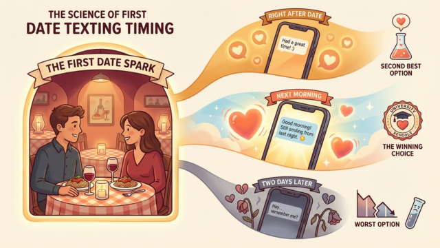 やさしい英語で多読!【音声つき】 【やさしい英文de多読!】<30> When Should You Text After a First Date? Science Has the Answer 初デートの後、いつ連絡すべき?科学が出した答え 2026-02-15 haradaeigo 原田英語.com 📖 英文(224 words) Have you ever been on a first dat …