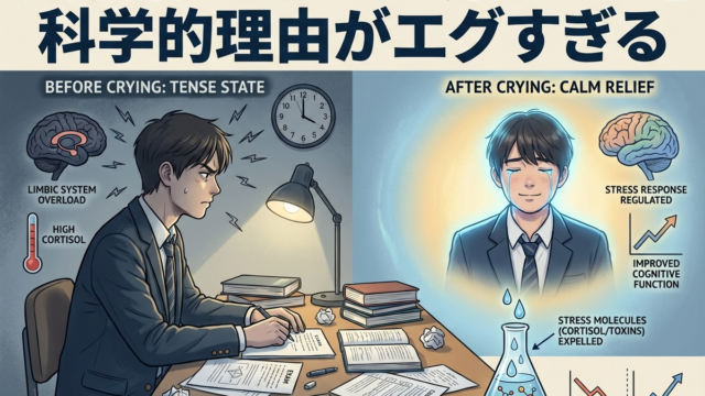 原田先生の英語学習法&お役立ちコラム 【受験前に「泣いた方がいい」 科学的理由がエグすぎる】 涙に含まれる天然鎮痛物質「ロイシン・エンケファリン」の驚異的メカニズムと、 泣くことで試験パフォーマンスが上がる脳科学の全貌 2026-02-16 haradaeigo 原田英語.com 💧 CRYING × STRESS RELIEF 受験前に「泣いた方がいい」 科学的理由がエグすぎる 涙に含まれる天然鎮痛物質「ロ …