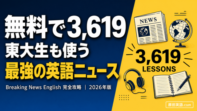 原田先生の英語とっておきの話 完全無料で3,619レッスン。東大生も使う最強サイト「Breaking News English」徹底解剖 29/04/2026 haradaeigo 原田英語.com 📰 FREE ENGLISH LEARNING SITE 完全無料で3,619レッスン。 東大生も使う最強サイト 「Breakin …