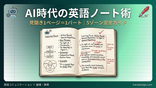 高校生×AI英語学習 【2026年最新】AI時代の英語ノート術|英語コミュニケーション×論理・表現で「最強の1冊」をつくる見開きノート完全ガイド 21/03/2026 haradaeigo 原田英語.com 🤖 2026年最新版 AI時代の英語ノート術 ——教科書を使う授業で 「最強の1冊」をつくる方法 英語コミュニケーション × …