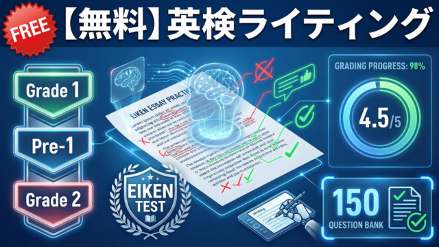 英検1級英作文(意見論述) 【無料】英検ライティングAI添削・自動採点ツール|1級・準1級・2級対応|150問&模範解答付き 11/03/2026 haradaeigo 原田英語.com 🤖 AI SCORING - 完全無料 書いた英作文を、AIが30秒で採点。 原田英語×AI …