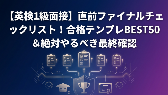 英検1級面接(スピーキング) 【英検1級面接】直前ファイナルチェックリスト!合格テンプレBEST50 &絶対やるべき最終確認 27/02/2026 haradaeigo 原田英語.com 🏁 2026年最新版・スピンオフ完全保存版 【英検1級 面接】 直前ファイナルチェックリスト 合格テンプレBEST50 &絶 …