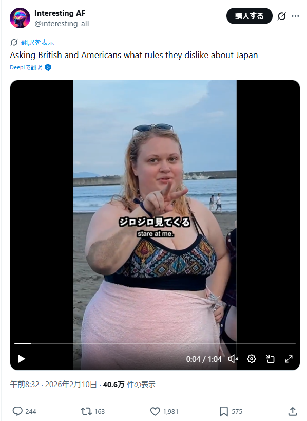 「日本では人が私たちをすごく見てくる。イギリスではそれはとても失礼な行為」