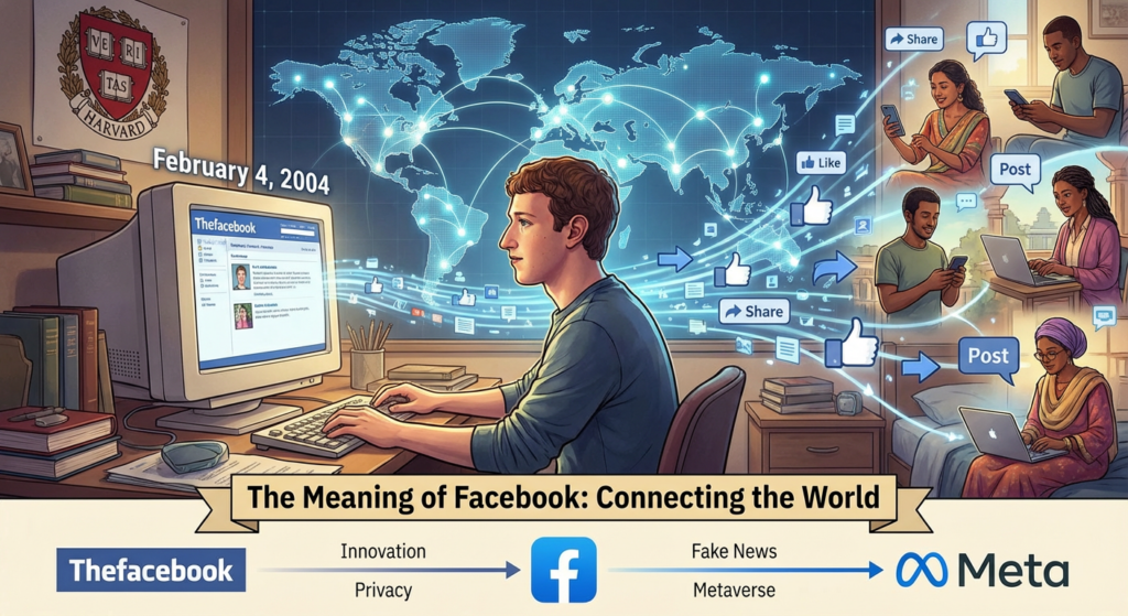 American entrepreneur Mark Zuckerberg launched the social network “Facebook” from his Harvard University dorm room on February 4, 2004. What began as a simple site for a 19-year-old student to connect with friends has grown into one of the world’s largest platforms. His vision, “connect the world,” serves as a symbolic example that laid the foundation for “social media” in English.