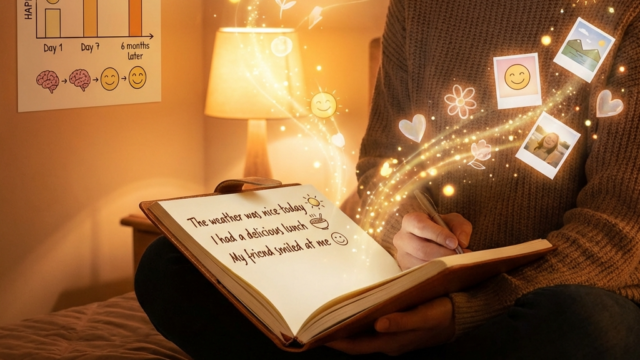 やさしい英語で多読!【音声つき】 【やさしい英文de多読!】<36> Write "Today Was a Good Day" and Feel Happier: The Science of Positive Diaries ポジティブ日記の科学:「今日はいい日だった」と書くだけで幸せになれる ~英文を楽しく&音声つきで読もう!~ 21/02/2026 haradaeigo 原田英語.com 📖 英文(224 words) Have you ever written a diary bef …