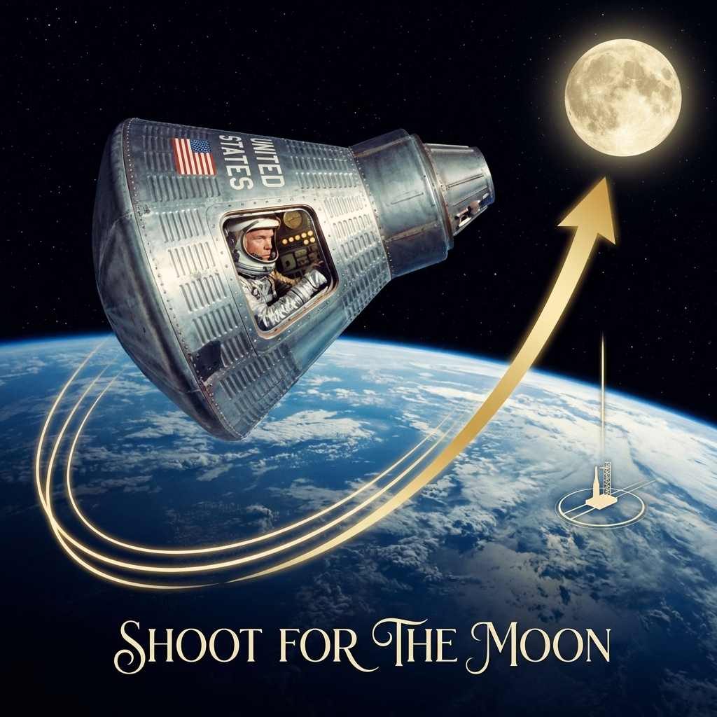 There is a historic moment that perfectly embodied this spirit. On February 20, 1962, John Glenn boarded the Friendship 7 spacecraft and became the first American to orbit the Earth. For the United States, which was trailing the Soviet Union in the space race, this challenge was quite literally an act of “shooting for the moon.”
